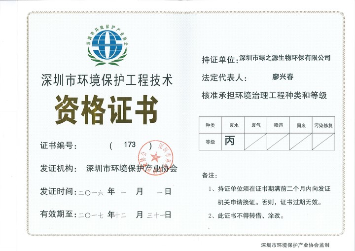 深圳市綠之源生物環(huán)保有限公司成立十余年,是經(jīng)深圳市環(huán)保局批準(zhǔn)的具有專項環(huán)保工程設(shè)計資質(zhì)的企業(yè),深圳市高新技術(shù)企業(yè)。公司從創(chuàng)立初期的水處理藥劑、水處理設(shè)備的研發(fā),逐步成長為環(huán)保類綜合性服務(wù)的企業(yè),目前年營業(yè)額約三千萬,集水處理藥劑研發(fā),工業(yè)廢水、廢氣及農(nóng)村生活污水處理等環(huán)保工程的設(shè)計、安裝、調(diào)試、運(yùn)營、技術(shù)咨詢一條龍服務(wù),為珠三角眾多企業(yè)服務(wù),解決相關(guān)環(huán)保難題,并取得了良好的社會效益和環(huán)境效益。